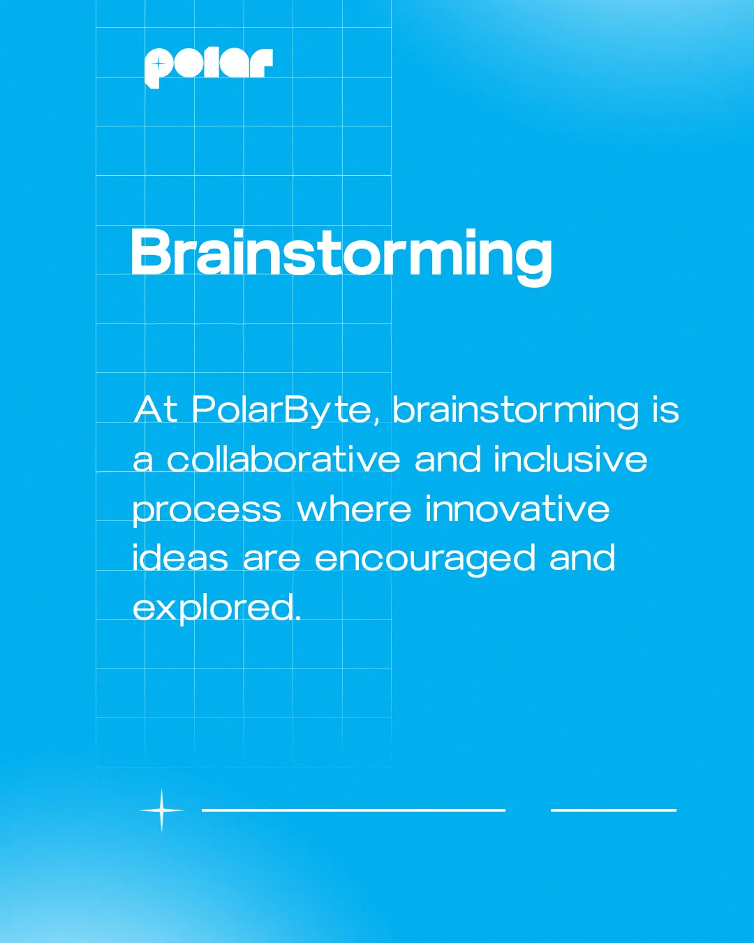 At PolarByte, brainstorming is collaborative and inclusive, fostering creativity through diverse perspectives. Teams identify core problems, encouraging open idea-sharing without limits. We use structured techniques like mind mapping, SWOT analysis, and the "five whys" to explore solutions deeply. This dynamic approach ensures innovative ideas are encouraged, explored, and refined to address challenges effectively.